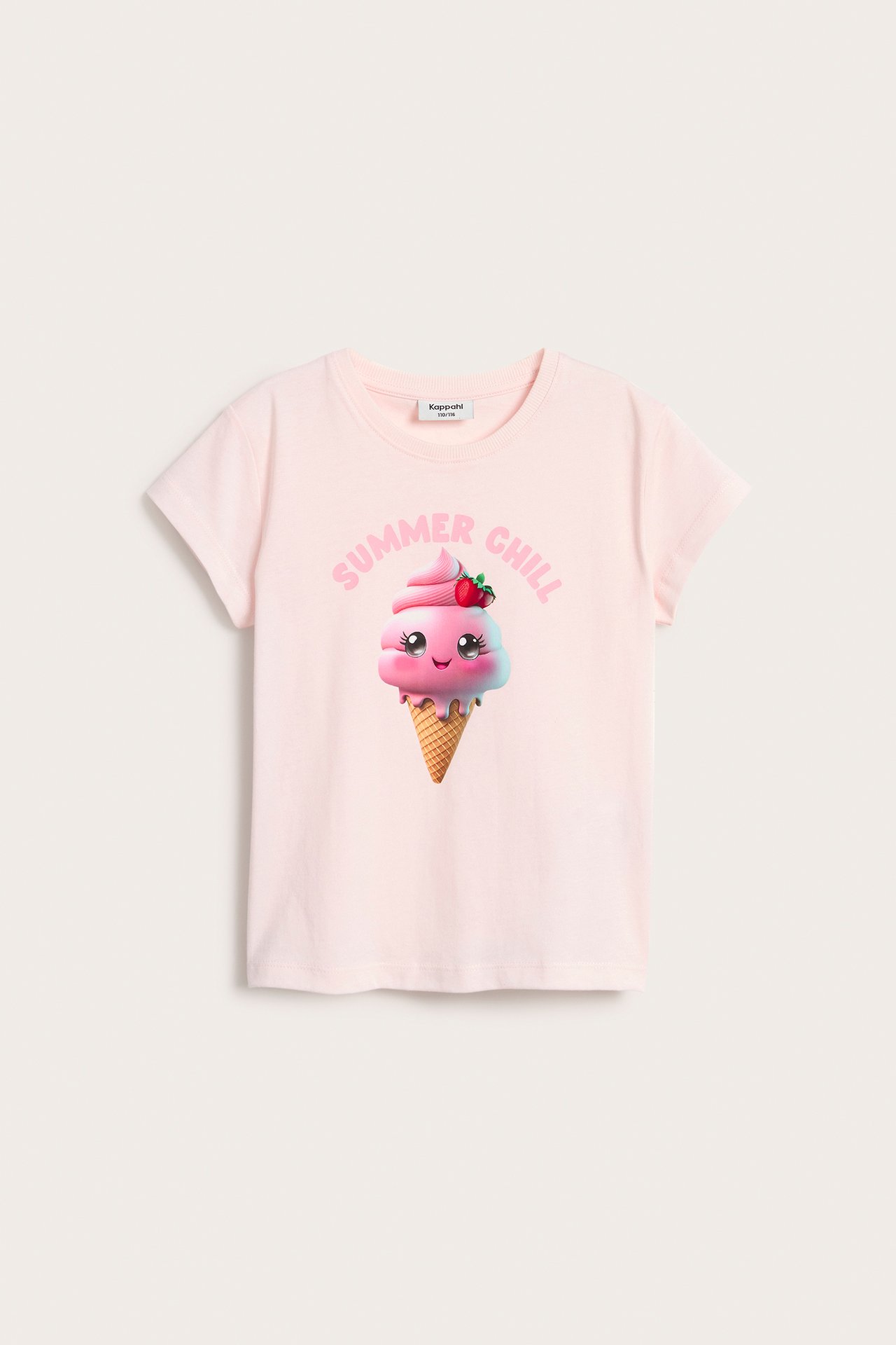 Mukavaa puuvillaa oleva lyhythihainen t-paita, jossa on painatus. Pyöreä ribattu pääntie.
