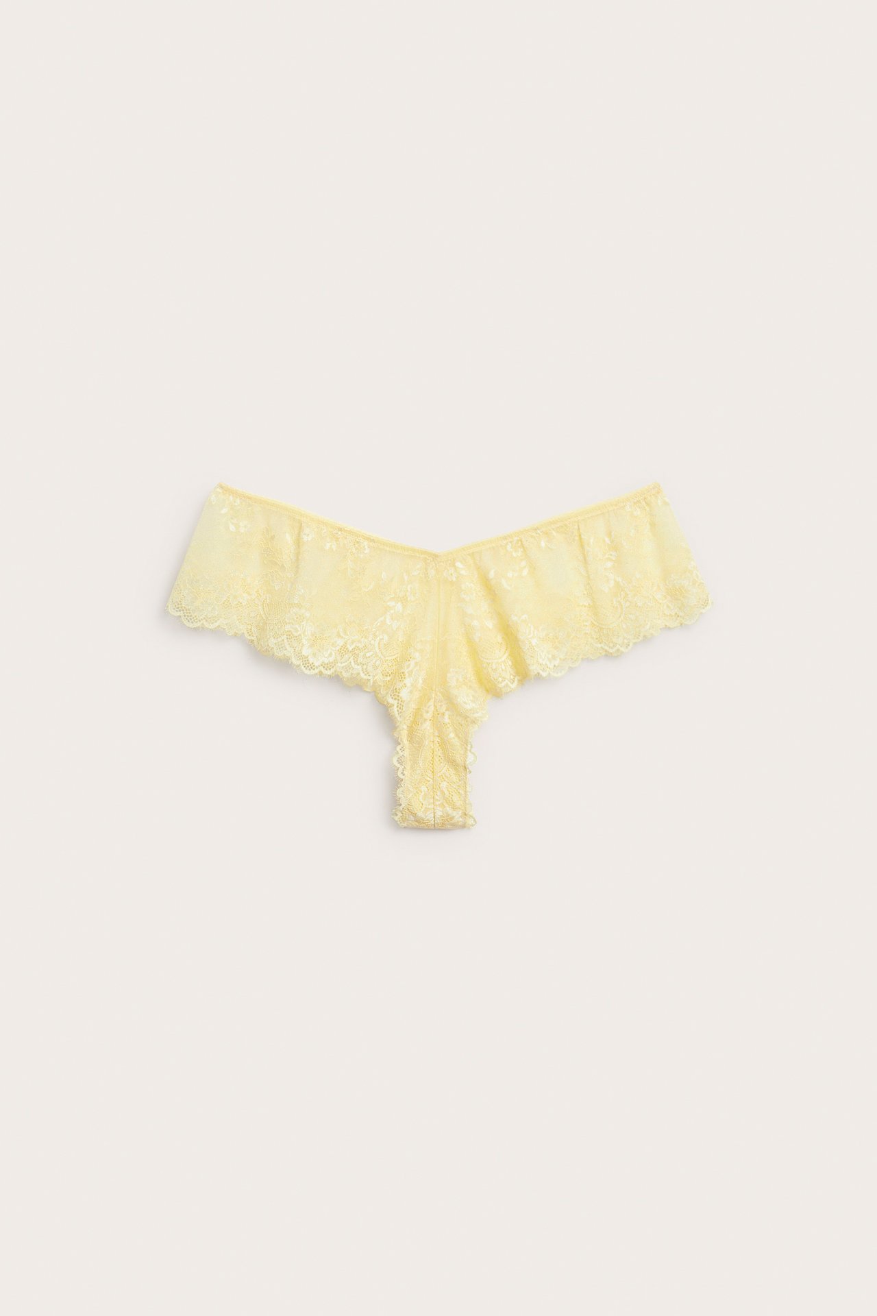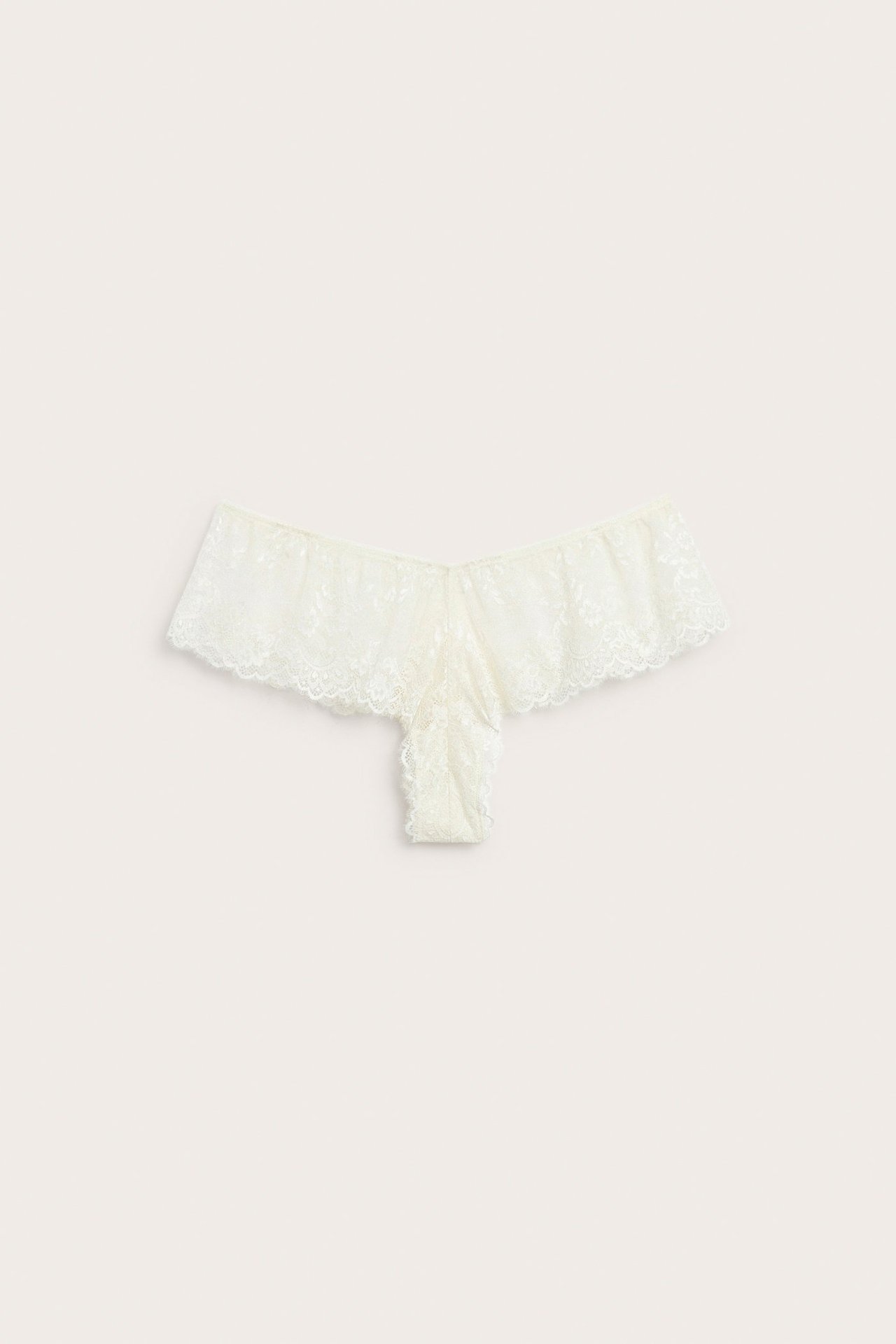 Xlnt:n brief-malliset pitsipikkuhousut, joissa on hapsureuna. Pitsipikkuhousut, joissa on korkea vyötärö ja väljä istuvuus jalkojen kohdalla.