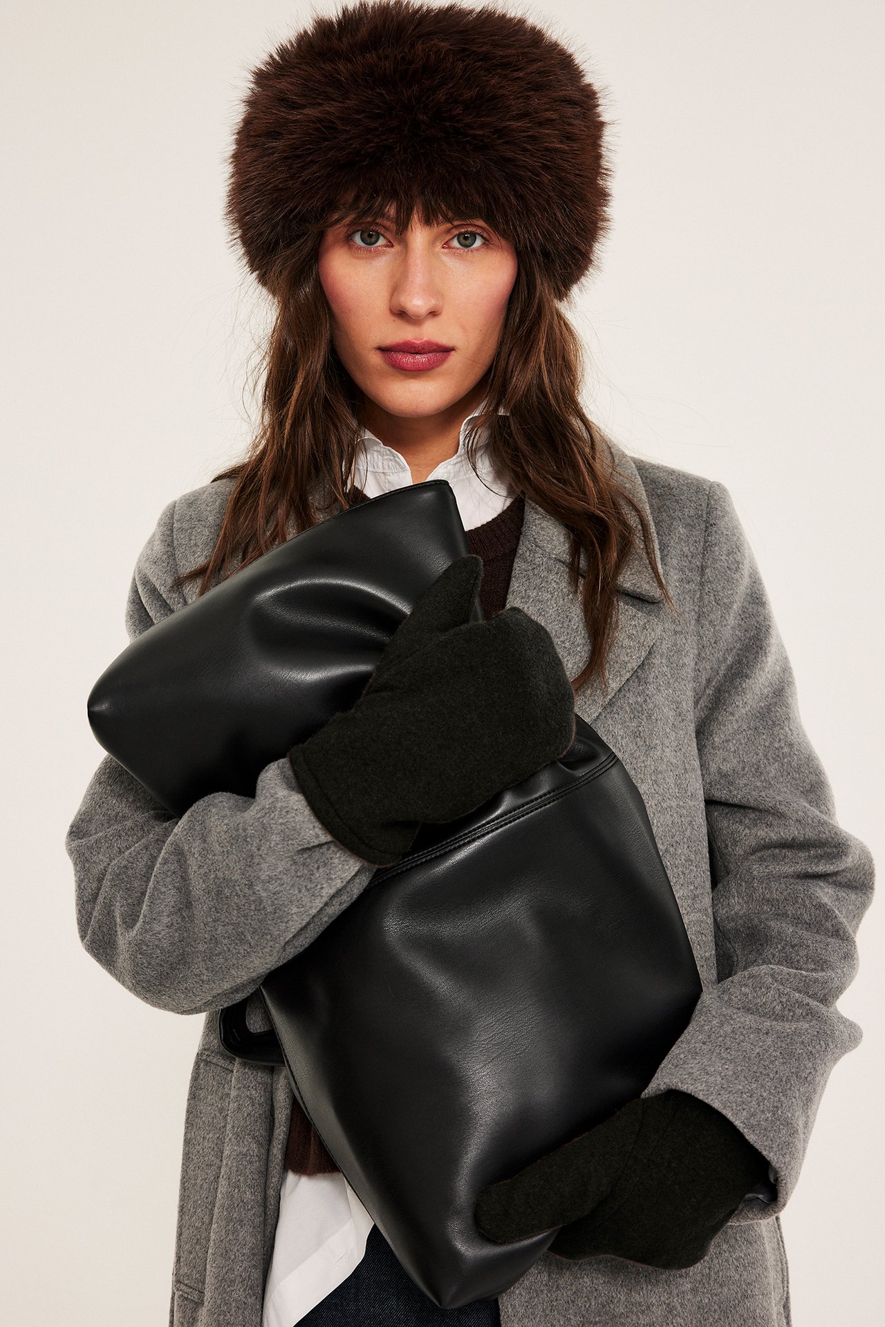 Lämmintä villasekoitetta olevat tasaneuloksiset lapaset. Lapasten sisäpuolella on pehmeä teddyvuori.