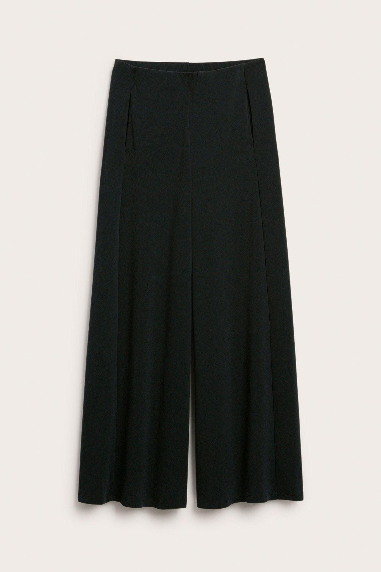 Pehmeät ja mukavat housut, joissa on väljä istuvuus. Housuissa on joustonauha vyötäröllä ja sivutaskut. Suorat ja leveät lahkeet. kay/day Ajaton mallisto, johon kuuluu sievin yksityiskohdin somistettuja yksinkertaisia vaatteita. Istuvuus on väljä. Mukavat vaatteet treeniin, kävelyille, matkalle tai kotoiluun.