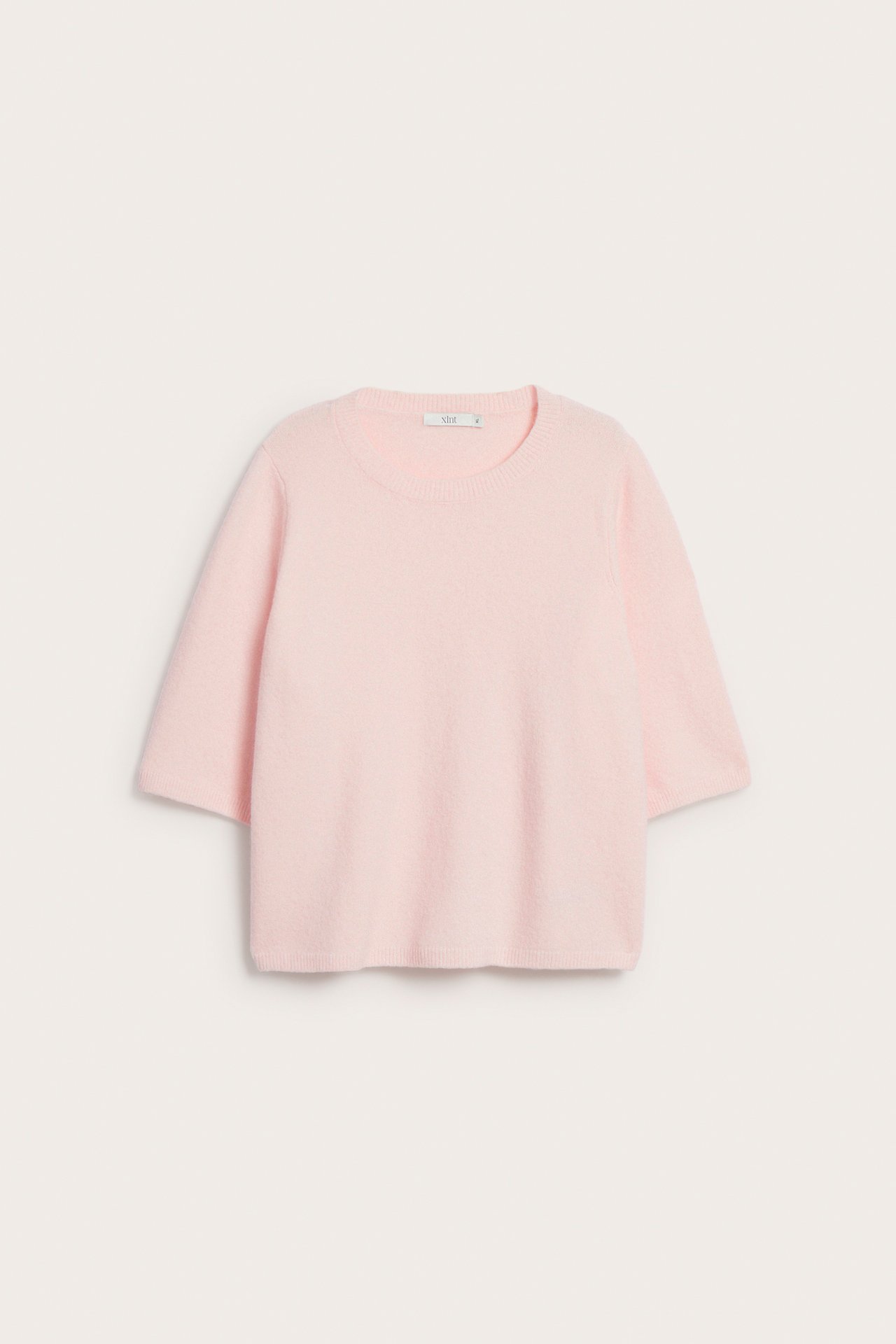 Neulottu Xlnt-malliston t-paita, jossa on 3/4-hihat. Paidassa on suora istuvuus, pyöreä pääntie ja suora helma.