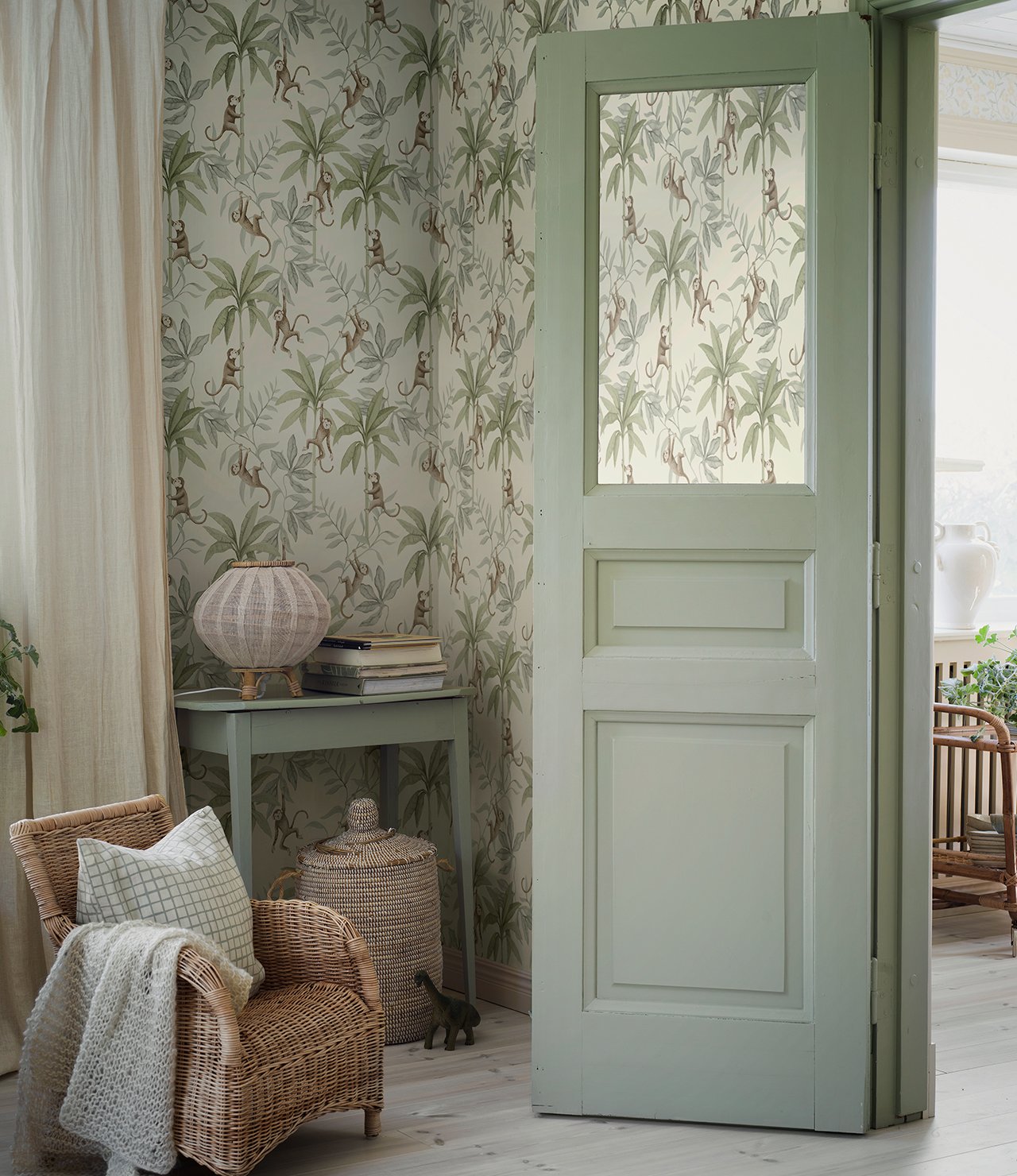 Lastenhuone on taianomainen paikka täynnä leikkiä, mielikuvitusta ja unelmia. Luo oma viihtyisä viidakkohuoneesi täynnä villejä mutta erittäin ystävällisiä eläimiä. Kuvittele keinuvasi liaanilla korkealla puiden latvojen keskellä. Hillityt sinisen ja vihreän sävyt sekä ruosteenpunainen ja beige luovat tunnelman. Valitse mieleisesi ihastuttavien lukutelttojen sekä pehmeiden peittojen ja tyynyjen joukosta. Löydä näppärä säilytyslaatikko kaikille leluille ja pehmoeläimille. Ripusta kattoon kauniit viirit. Petaa sänky kauniisti kuvioidulla vuodevaatteilla. Valitse huonetta kehystämään yhteensopiva tapetti, jonka olemme luoneet yhteistyössä Boråstapeterin kanssa. Kaikkien Newbie room -tuotteiden puuvilla on ekologisesti viljeltyä.
