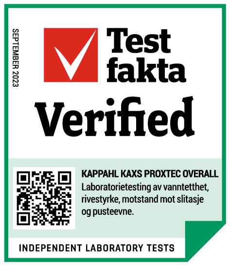 - Vinterdressen fra Kaxs har oppnådd Testfaktas kvalitetsmerking: Verfied Quality & Performance for god kvalitet og svært god vanntetthet.