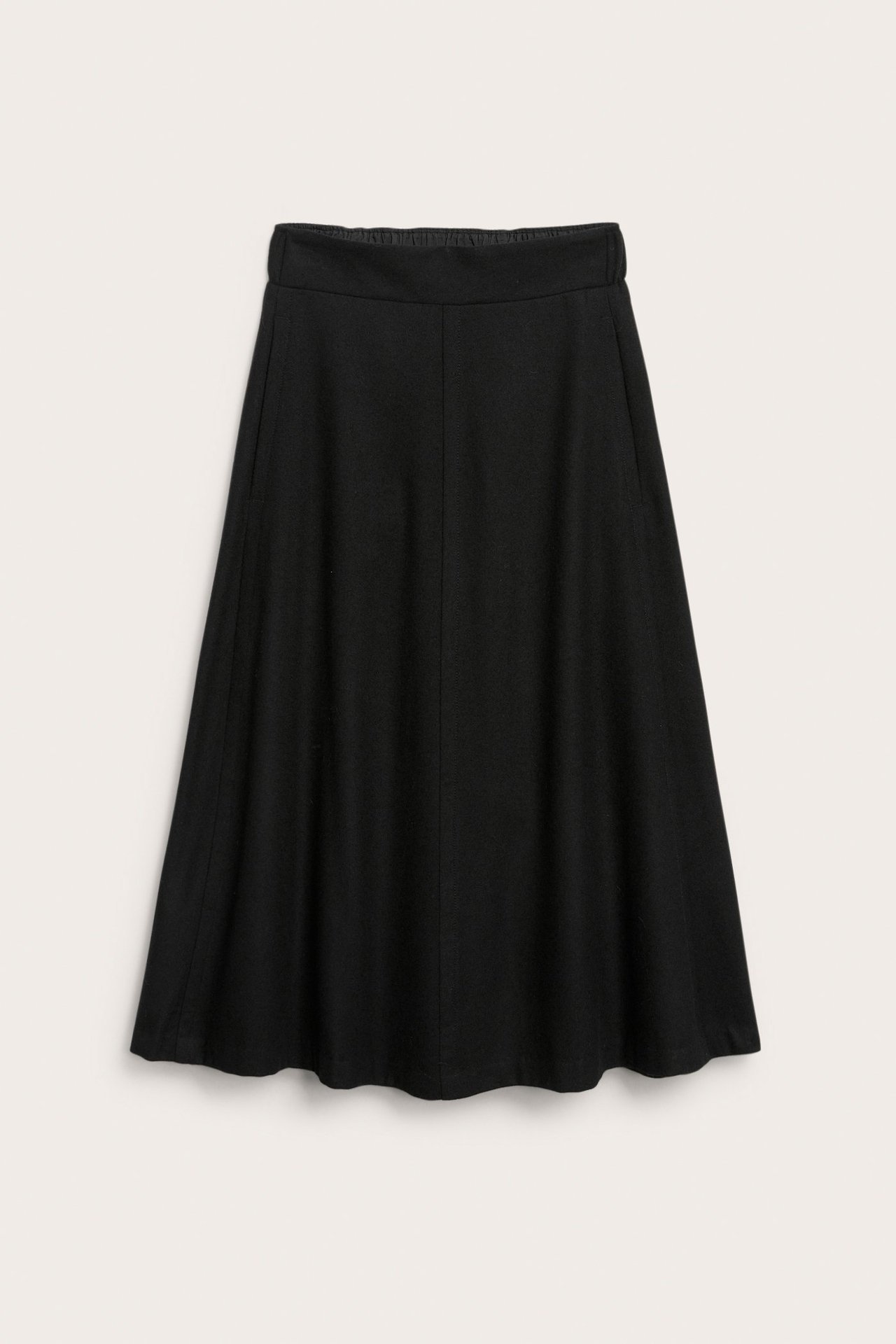 Lett utsvingt skjørt i myk ullblanding med behagelig strikk bak i linningen. Modellen har sidelommer og en normal passform. kay/day En kolleksjon med enkle plagg i tidløst design med fine detaljer. Passformen er løs og romslig. Komfortable plagg til trening, turer, reiser eller for å bare slappe av hjemme.