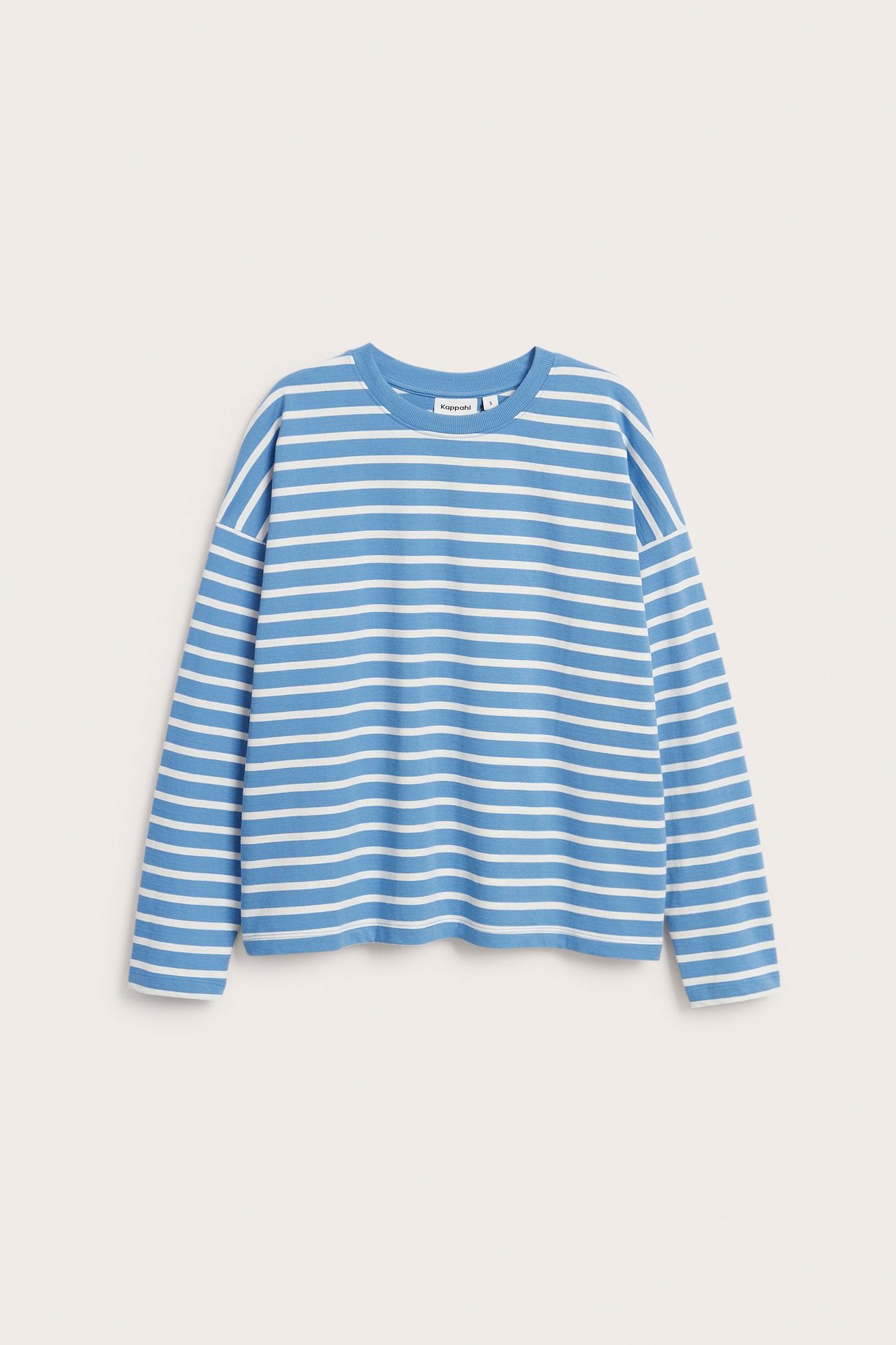 Stripete topp med lange ermer i kraftig jerseystoff. En fin og enkel topp i avslappet oversize-modell med lavtliggende skuldre og løs passform. Rund hals.