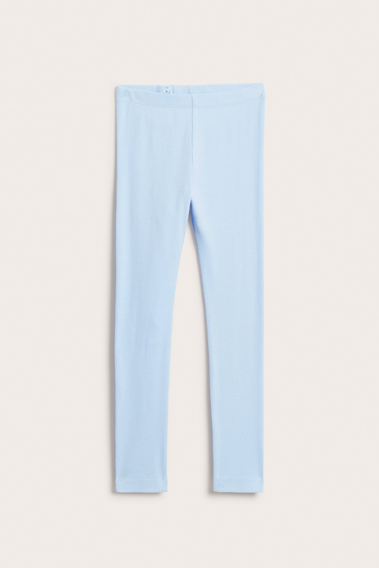 Prążkowane legginsy z bawełny ekologicznej, z przyjemnym w dotyku streczem, z wszytym ściągaczem w pasie. Miękkie, wygodne basicowe legginsy dla dzieci.
