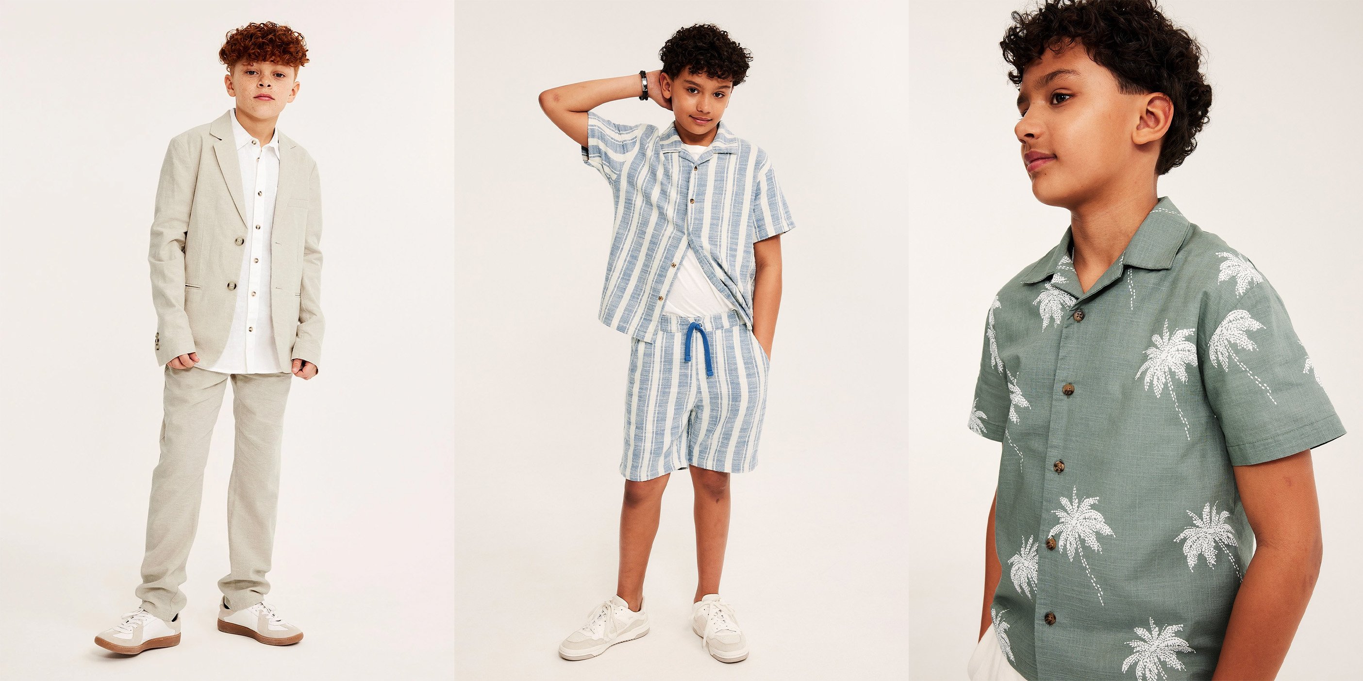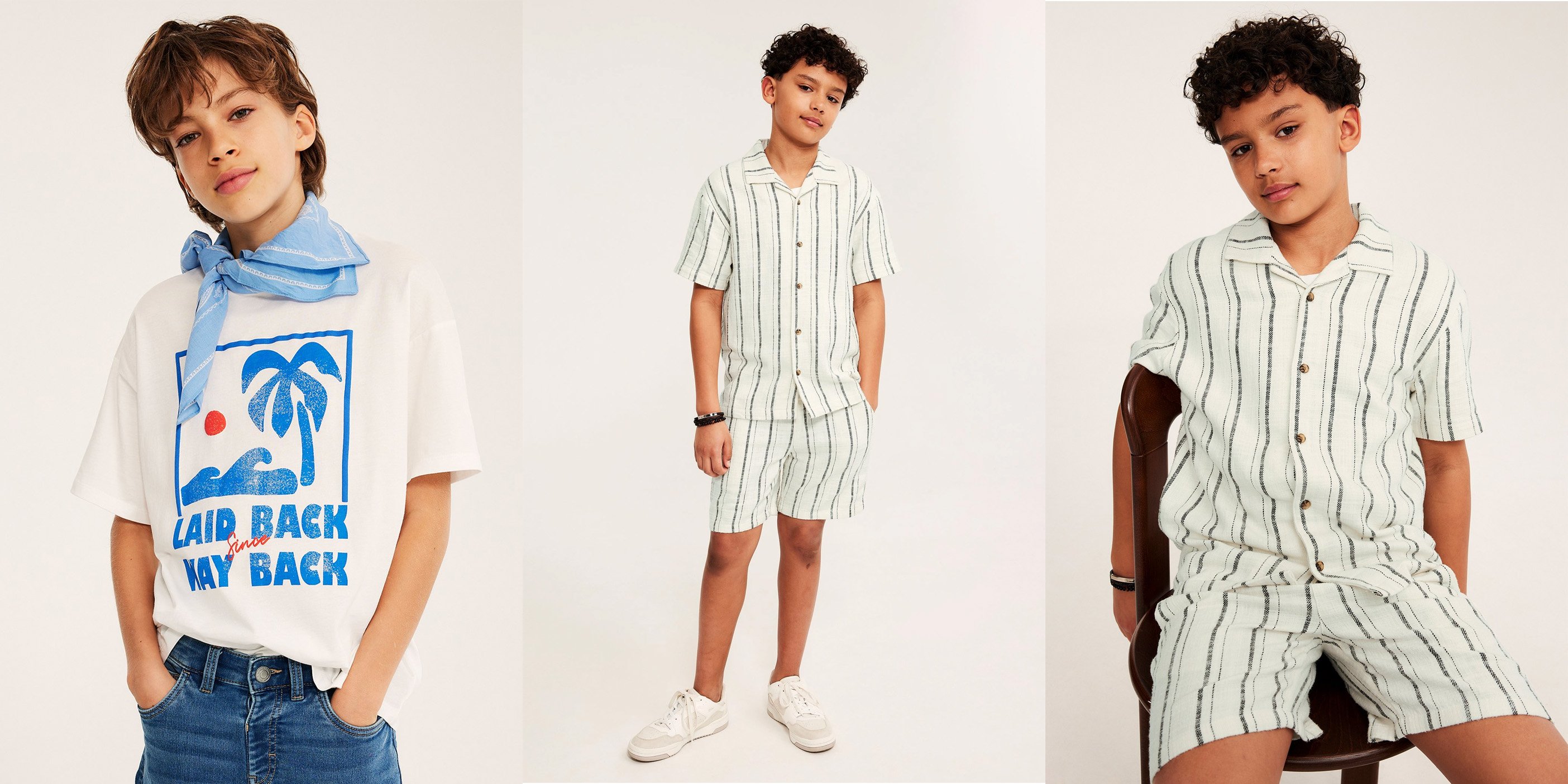 Odkryj ubrania okolicznościowe dla chłopców w rozmiarach 128–170 na zakończenia roku szkolnego, przyjęcia i letnie imprezy. Pasujące komplety, lniane ubrania, koszule we wzory – proste, kluczowe elementy, które wyglądają odświętnie i są wygodne przez cały dzień. Połącz je ze spodenkami oraz szortami i spodniami w sezonowych kolorach, aby uzyskać styl jednocześnie elegancki i komfortowy.