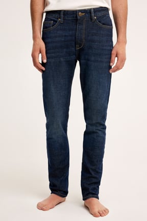 Model jeansowy o dopasowanym kroju, w którym nogawki przylegają do samego dołu.
