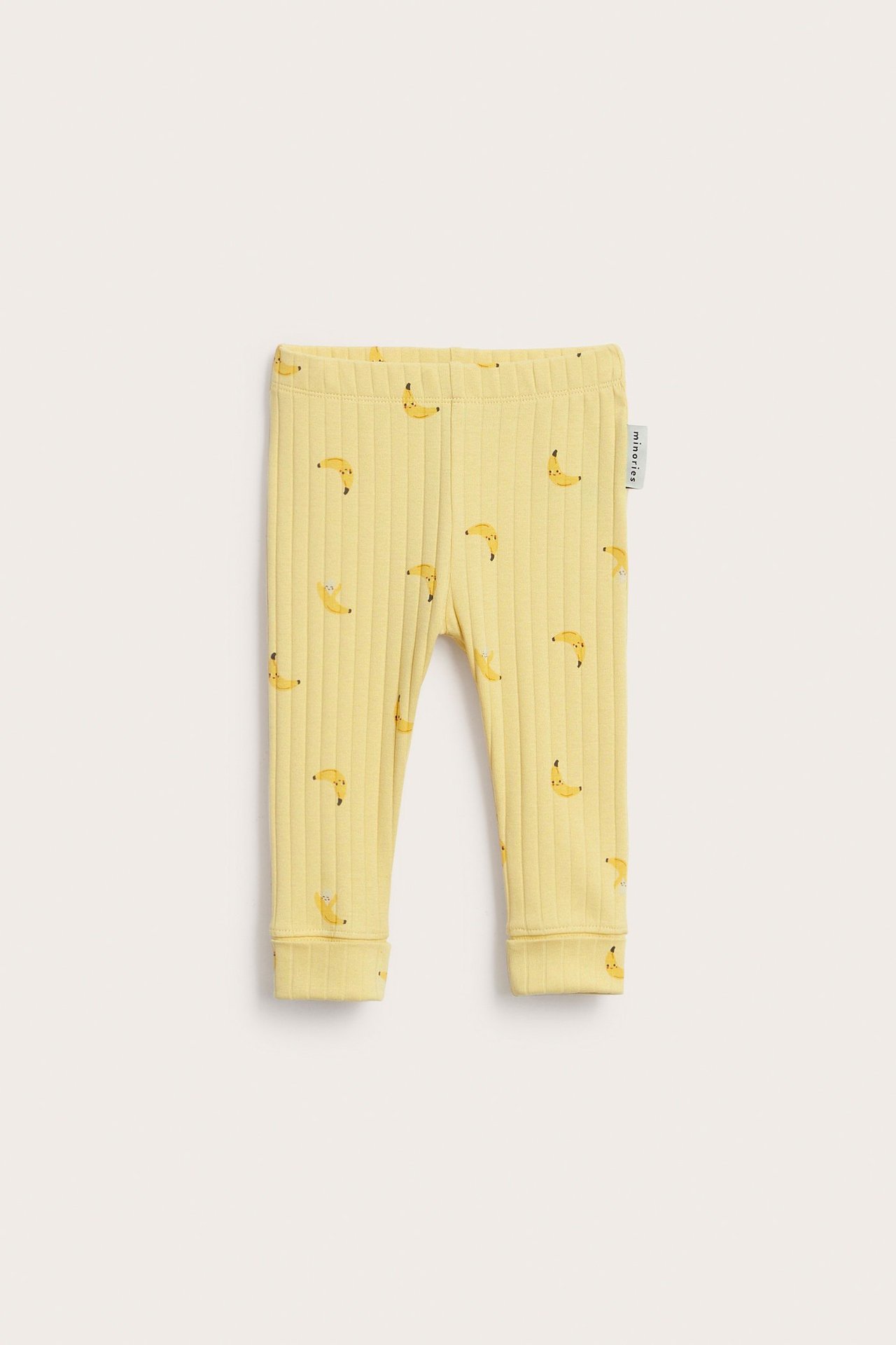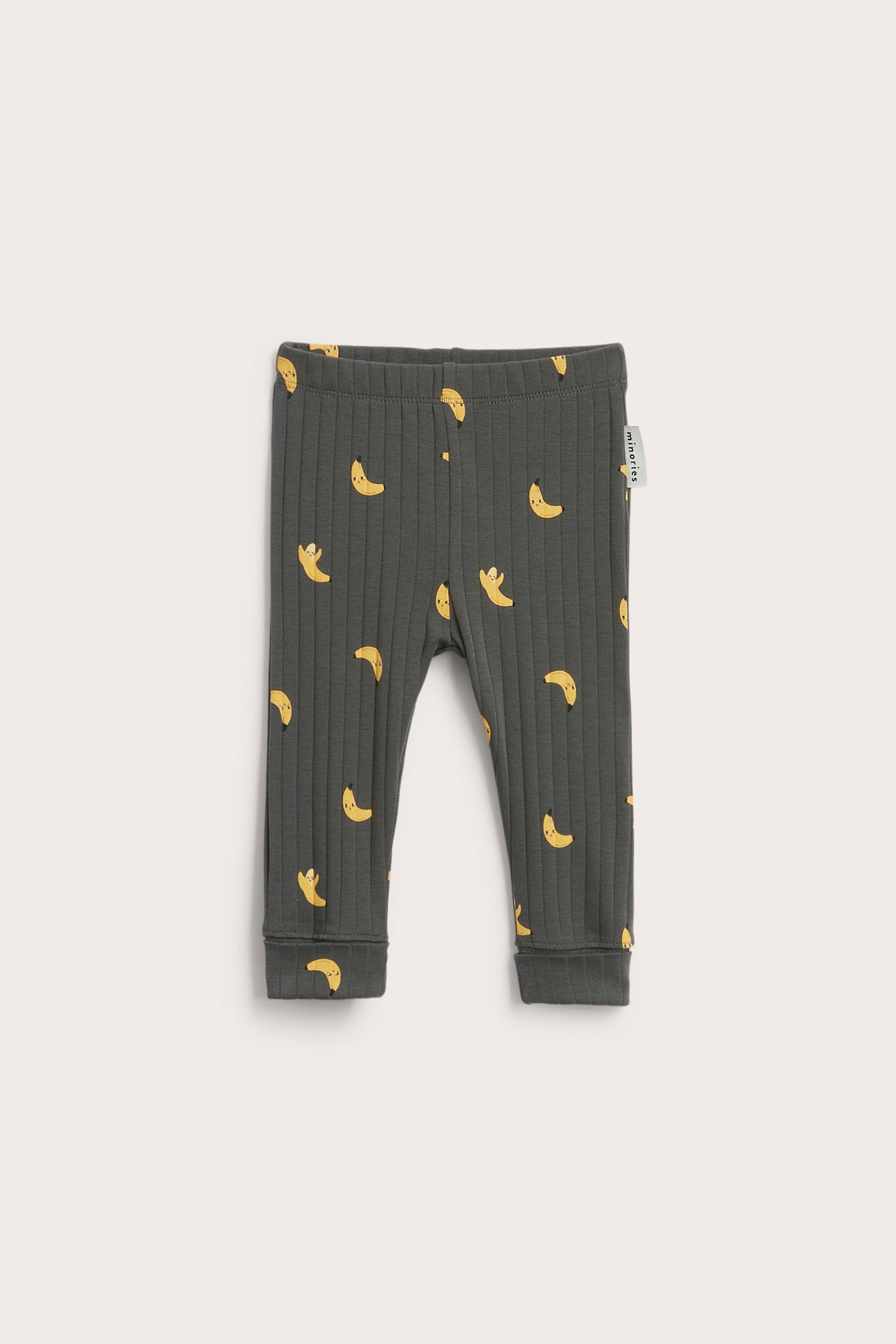 Mönstrade babyleggings från Minories, gjord i bekväm ekologisk bomull. Leggingsen är ribbade och har resår i midjan samt nedvikbara muddar i benslut för växa-funktionen. Växa-funktioner gör att bebisen ska kunna växa med plagget men ändå kunna behålla samma plagg över en längre tid.