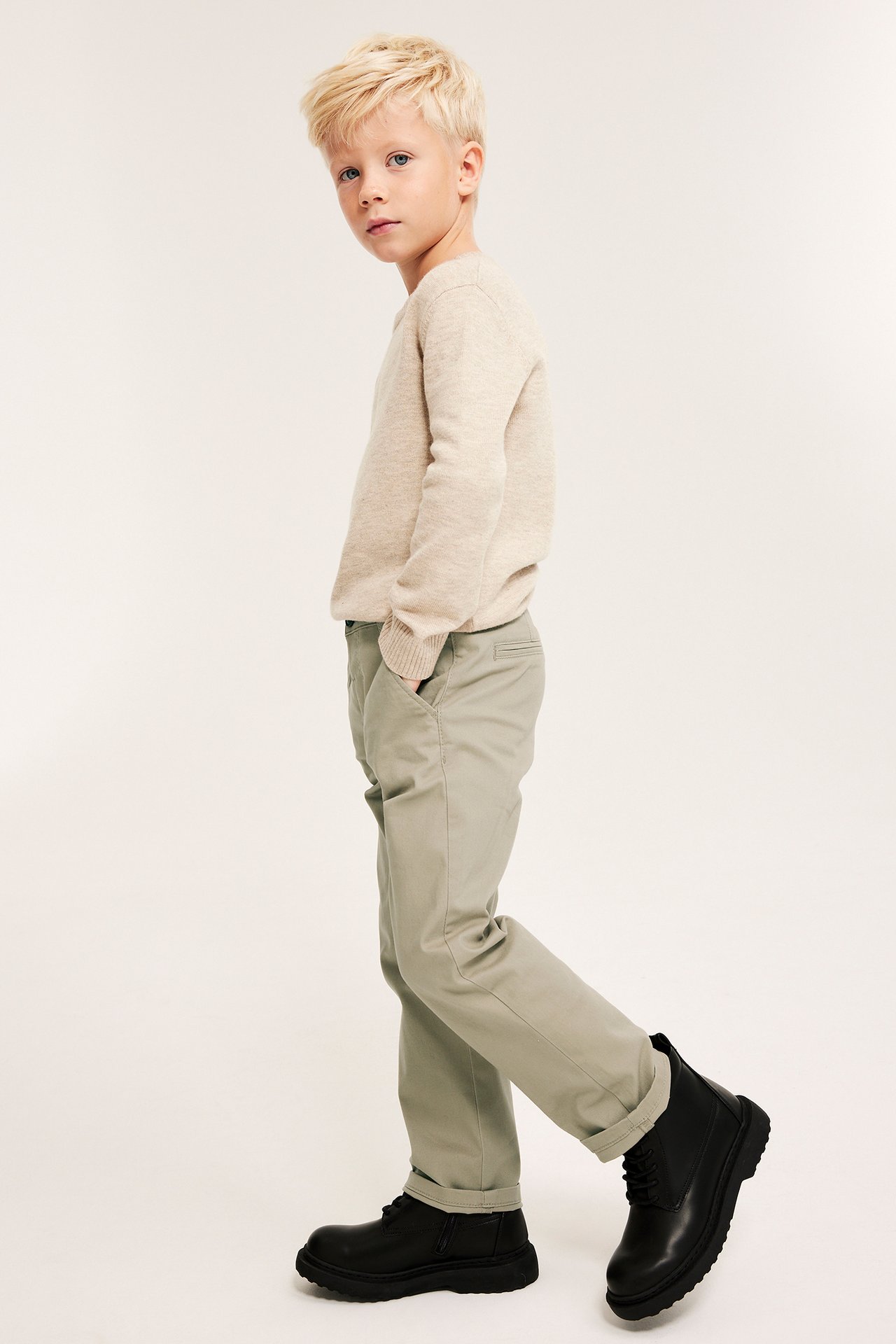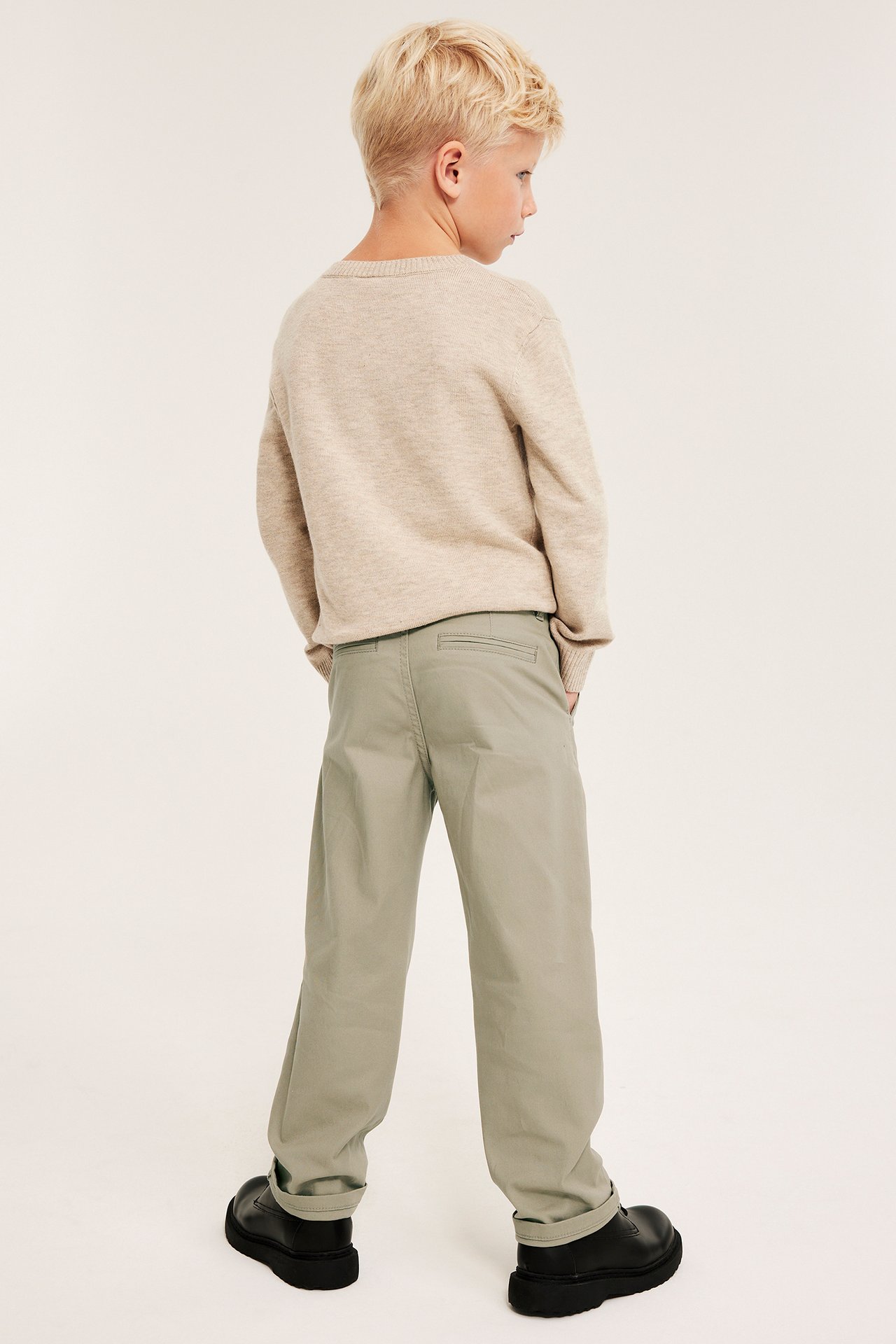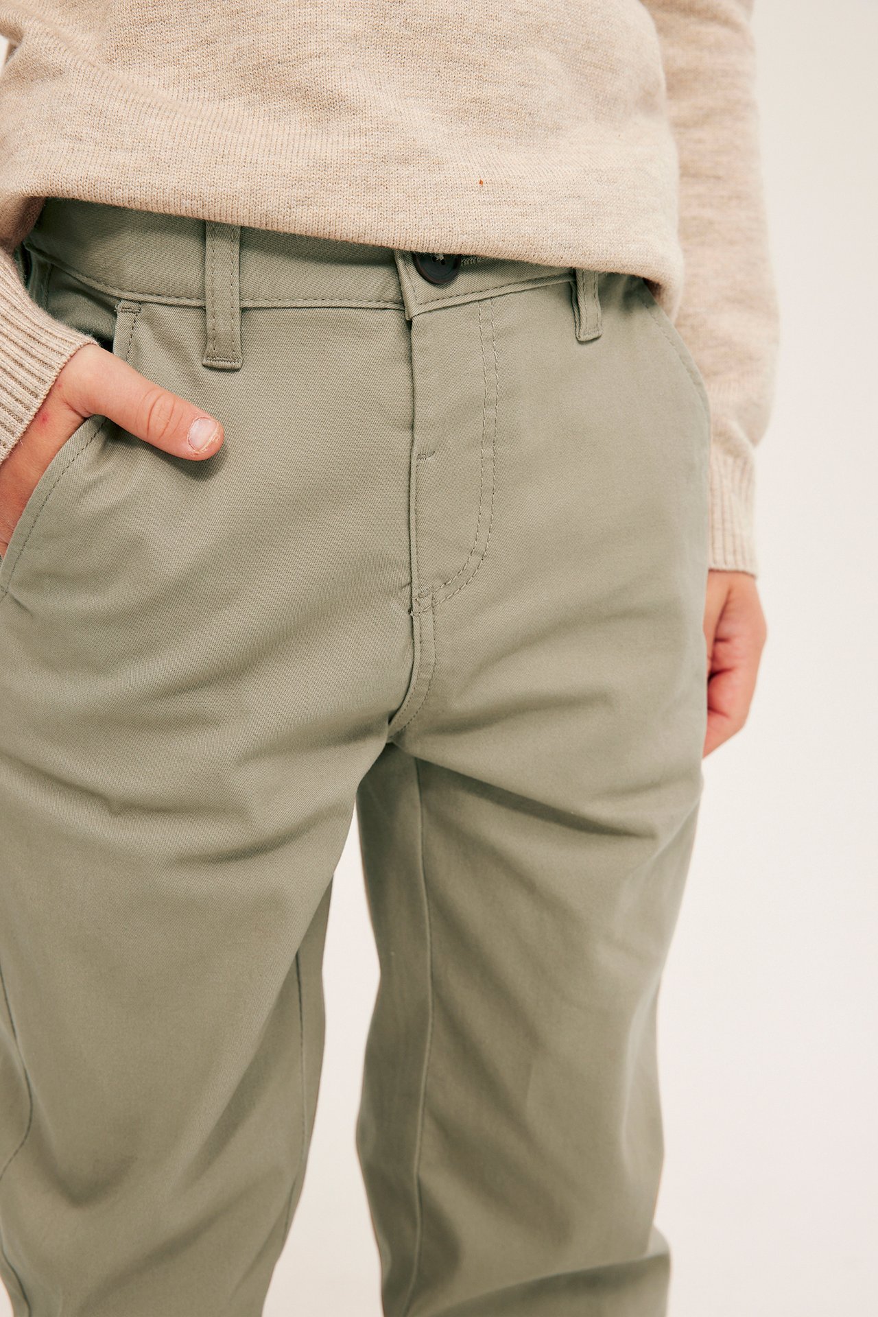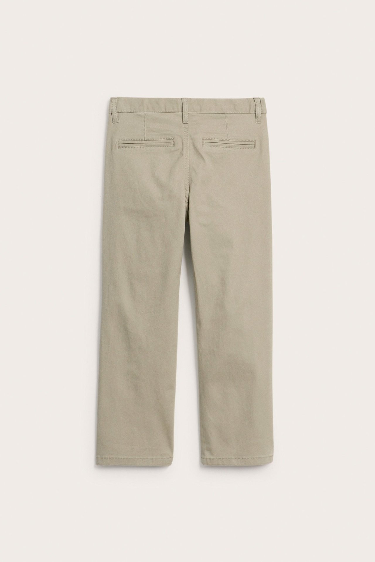Klassiska chinos i mjuk och skön bomullskvalitet med stretch. Byxorna har snedskurna fickor i sidorna och dekorativa passpoalfickor bak. Midjan har knapp och fejkgylf, justerbar resår på insidan samt skärphällor.