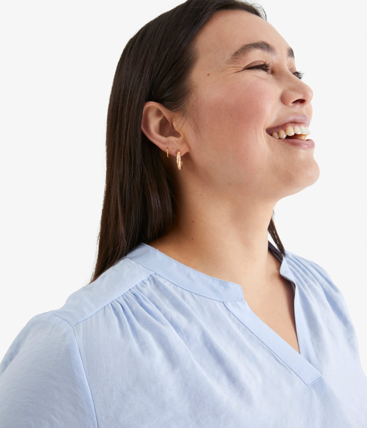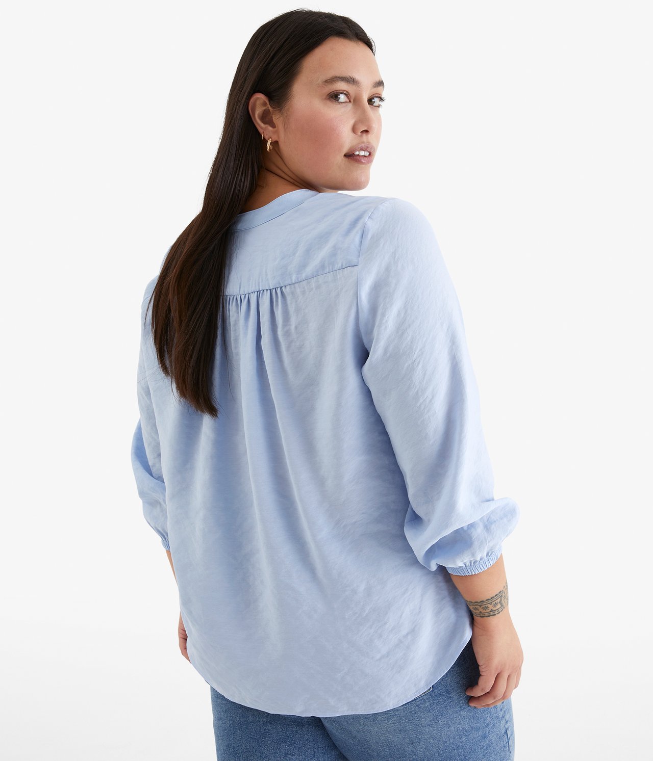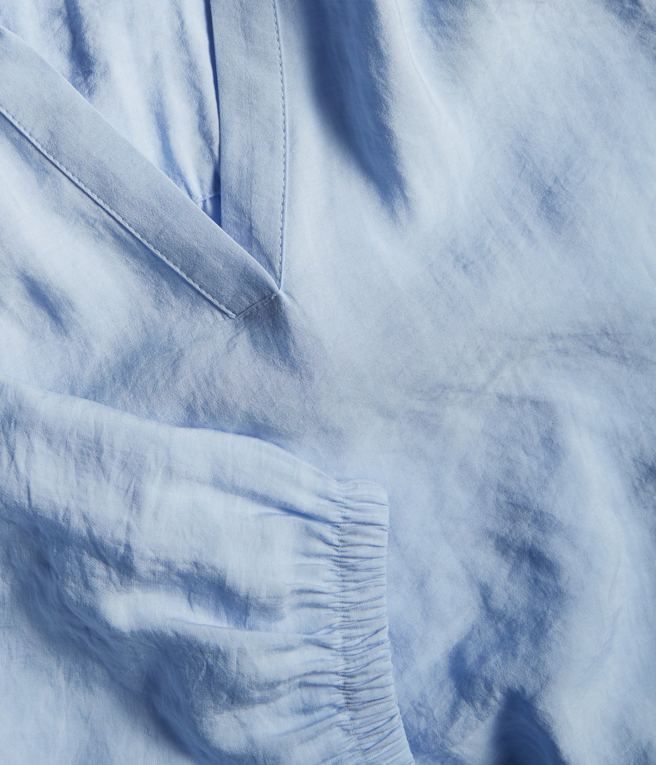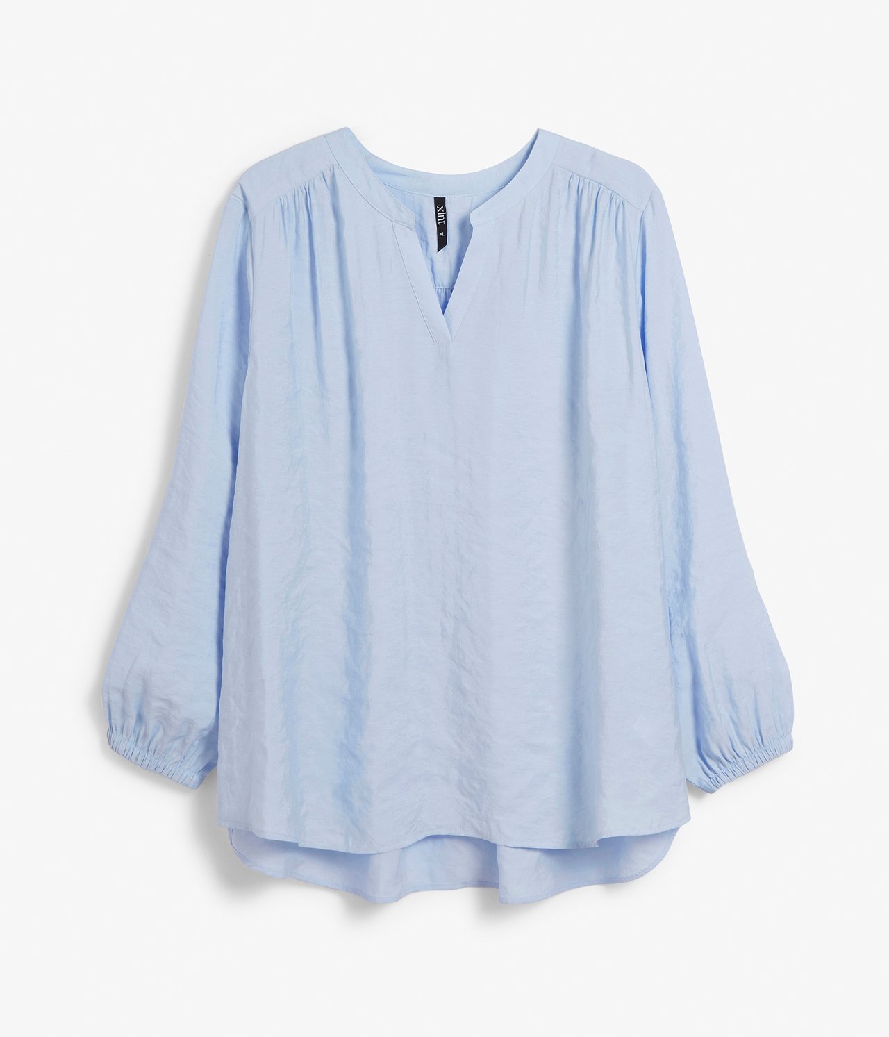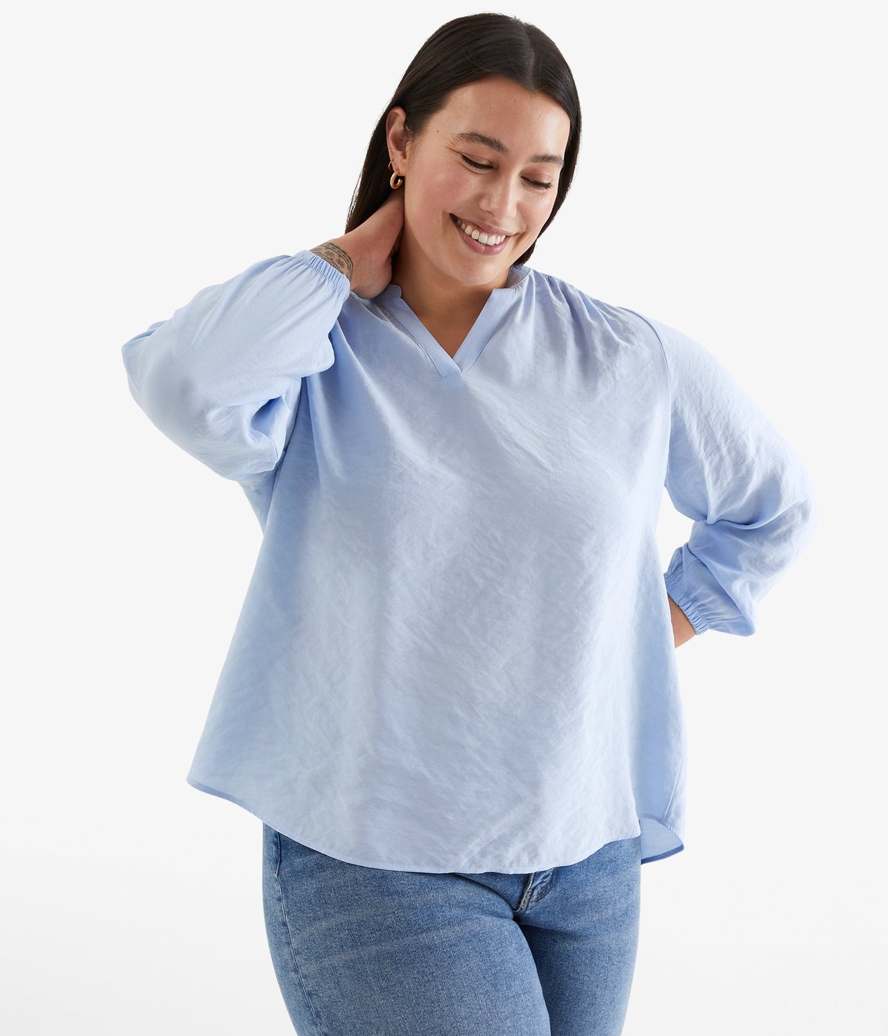 Blus från Xlnt i fint lyster. Blusen är lätt A-linjeformad, v-ringad halsringning och lång ärm. - 76 cm lång i storlek XL - Innehåller 84% TENCEL™ modalfiber. - Denna produkt är delvis gjord av TENCEL™ modalfiber, ett material som tillverkas av träcellulosa från ansvarsfullt odlad skog i en process med minskad miljöpåverkan.