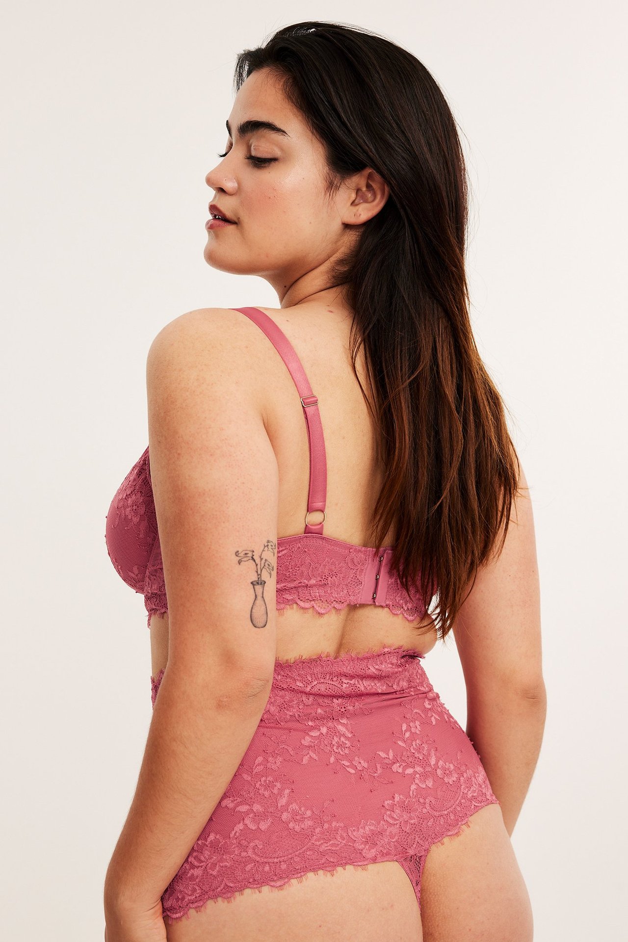 Spetstrosor i stringmodell med en hög midja från Xlnt. På insidan i midjan finns en powermesh som ger lättstöd och support. Mjuk, skön och väldigt stretchig spets.