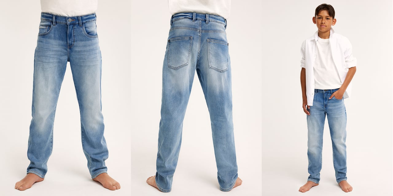 Jeans med mer luftig, avslappnad passform och skön stretch. En perfekt modell för barn som inte tycker om när jeansen sitter åt för mycket. Denna modell är perfekt för de yngre barnen och möjliggör för både lek och rörelse.