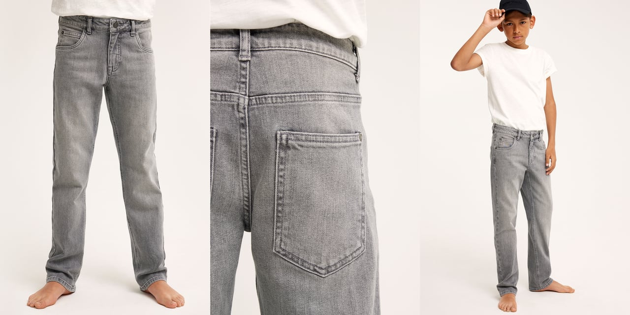 Visste du att du kan du halvera dina jeans klimatpåverkan genom att använda dem dubbelt så mycket? Jeans är dessutom en tidlös och säsongslös garderobshjälte som aldrig tappar stilen och bara blir snyggare och skönare ju mer du använder dem. Investera lite tid i att verkligen prova ut favoriter som du kommer älska länge. Kika gärna i våra denimguider så hjälper vi dig hitta din perfekta passform. Så att du kan älska dem ännu mer. I vårt barnsortiment har vi dessutom extra slitstarka jeans förstärkta med Cordura® som låter leken hålla längre. Hitta extra lekvänliga jeans.