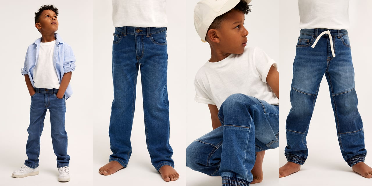 Barnjeans som är extra mjuka men ändå ser ut som klassiska jeans. Våra joggerjeans är gjorda av mjuk joggerdenim med borstad insida. Joggerdenim är ett material som ser ut som jeans men är lika sköna som ett par joggingbyxor. Joggerjeansen finns i flera modeller och färger att välja mellan.