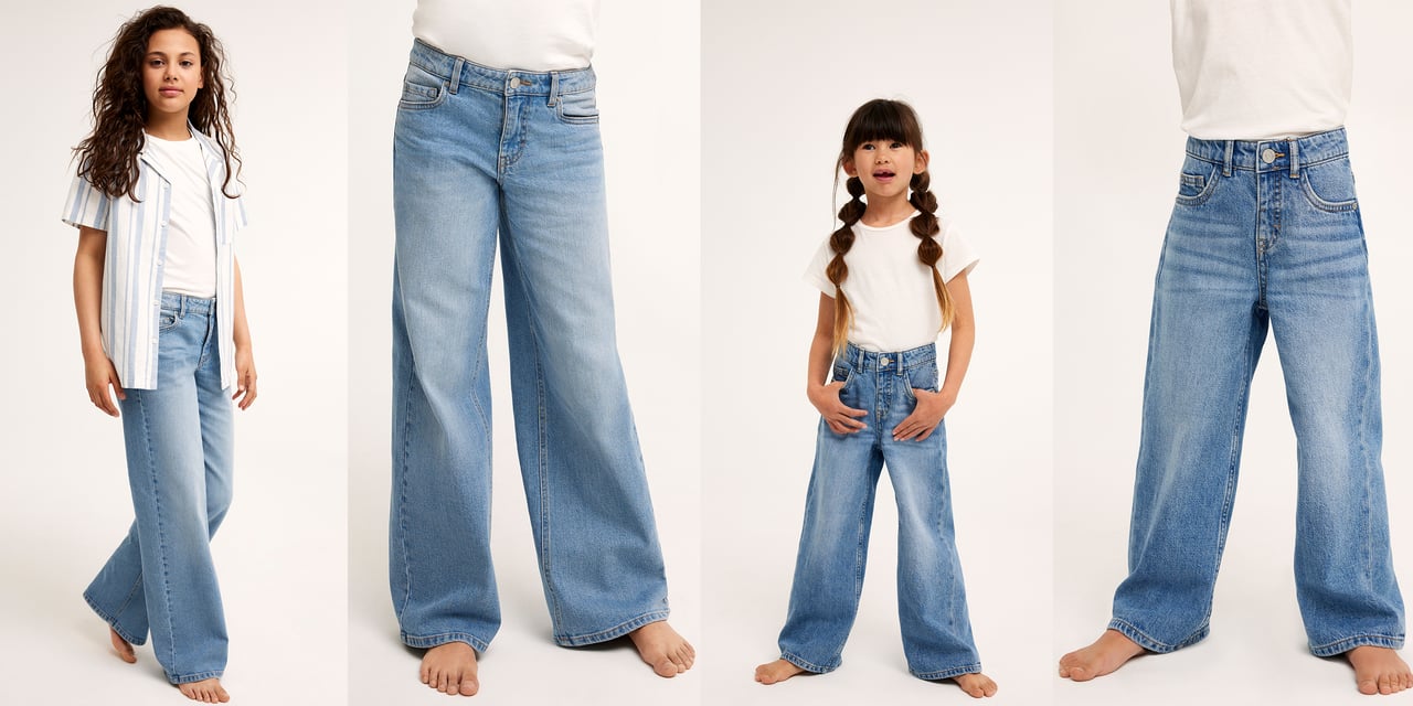 Jeans med mer avslappnad och vid passform är både bekvämt och snyggt att bära. Wide jeans för barn har ofta medelhög midja och vida raka ben, är sköna och luftiga och ger ett lite tuffare uttryck än smala modeller.