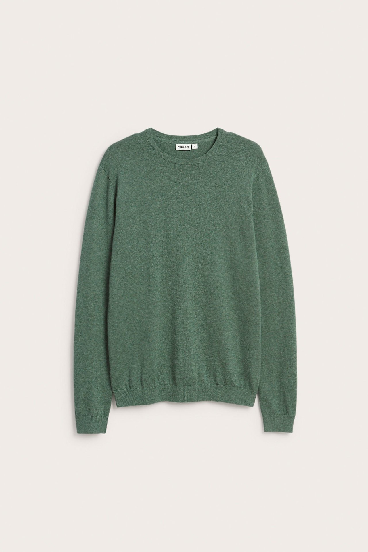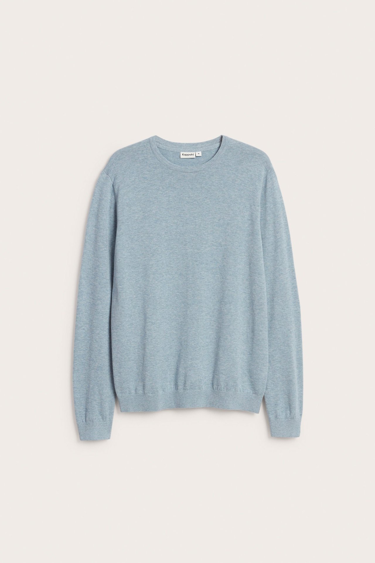 Finstickad tröja i klassisk modell med rund halsringning. Tröjan har ribbstickade muddar vid halsringning, ärmslut och nertill. Normal passform och rak kant nertill. Klassisk tröja som passar till många olika tillfällen.