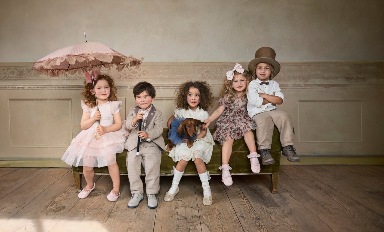 Kollektionen går i mjuka, drömska färger som krämvitt, dammigt rosa, mjuka bruna toner och även guld, som finns i vissa av detaljerna. Plaggen består av allt från vackra klänningar, skjorta och väst, till vippiga ballerinakjolar och en liten rutig kostym. Även matchade accessoarer som rosetter, ballerinaskor och strumpor samt två matchande klänningar för kvinnor ingår i den limiterade kollektionen.